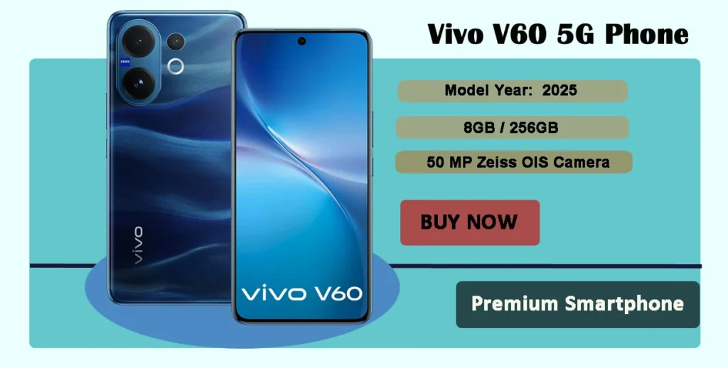The Vivo V60 5G is a modern smartphone launched in 2025 and is designed to offer powerful performance and seamless connectivity.